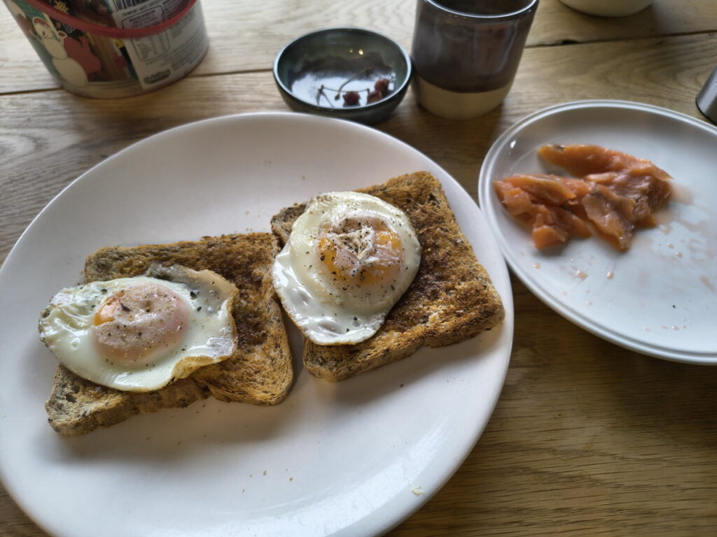 卵とスモークサーモンという組み合わせが、以外にも美味い。