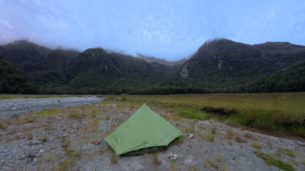 ここより別の道、Routeburn North Branch Trackに少し入り、そこで野営した。