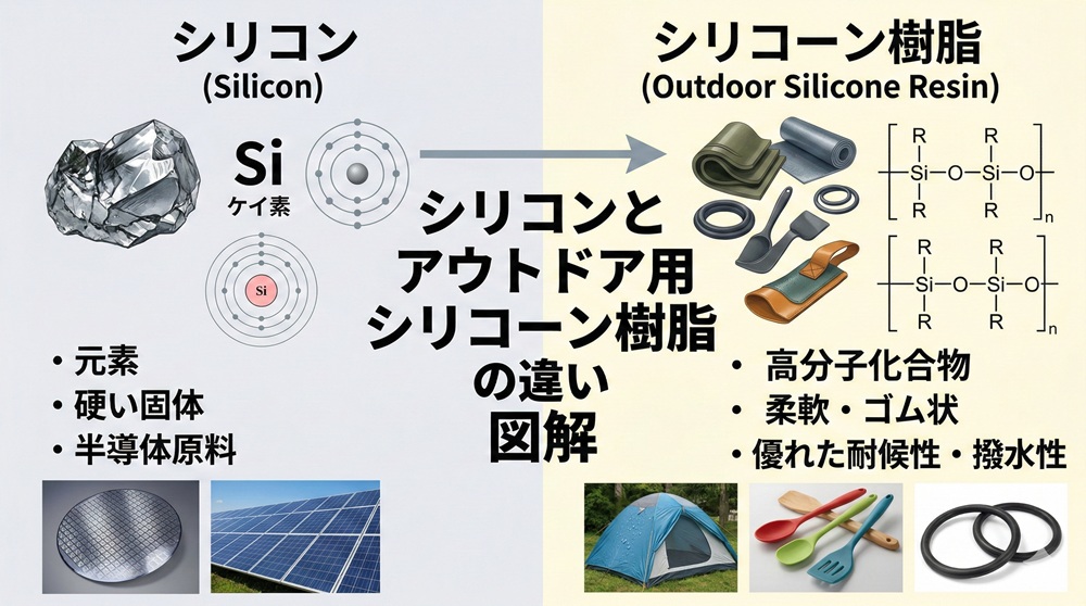 僕らがアウトドアで呼ぶ「シリコン」は、正確には「シリコーン樹脂」を指します。