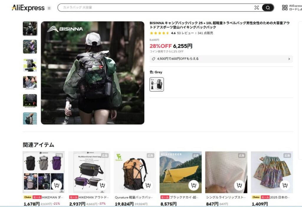 さっきのHIKEMANポーチを見ていて感じたのは、アリエクはレコメンド機能をバチバチに利かせてくるという事。