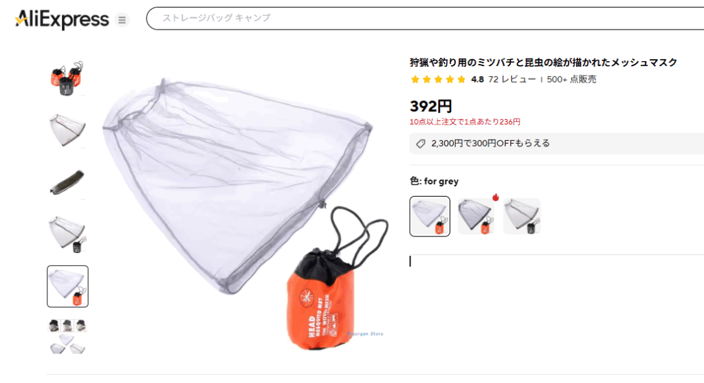 セール360円で買った、格安のモスキートネット↓