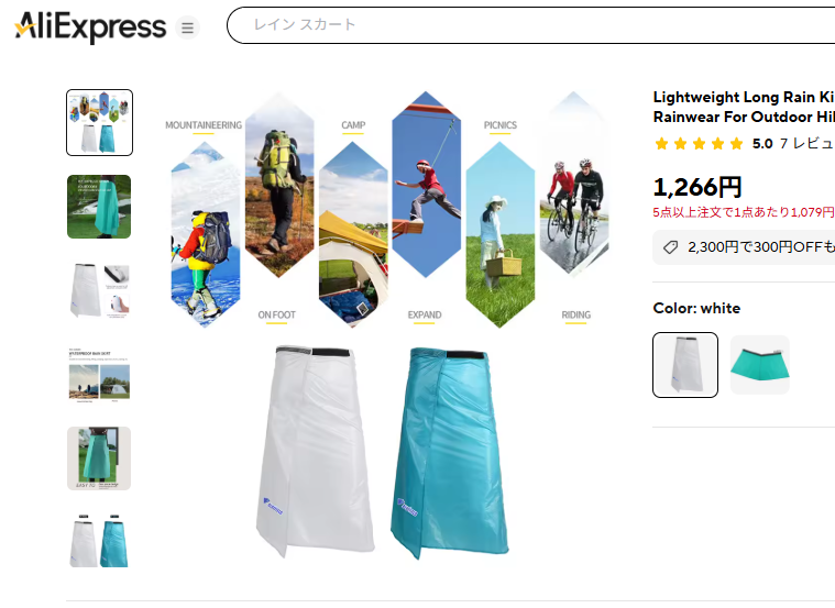 レインスカートで一番手軽かつ、名前も一応見たことあって、シルナイロンで、軽くて安かったのでこれにした。