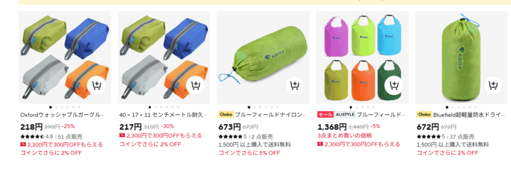 どれも中国系アウトドアなので、中国系ならおおよそAmazonより安いです。