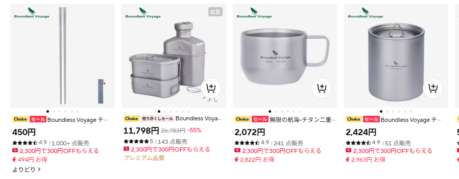 「アウトドア」と検索するだけで、目移りしてくるというか、Amazonに比べてレコメンドが上手な気がするんだ。