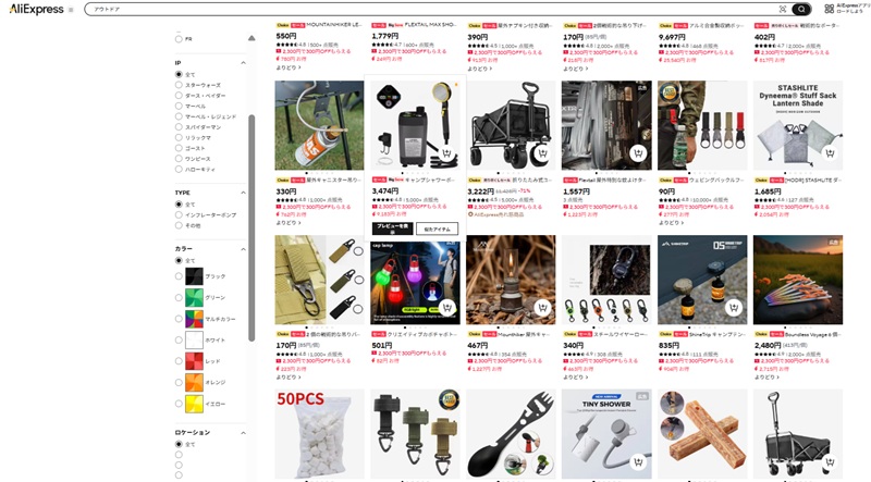 気になっていたアウトドアグッズがあったら、アリエクが安いんでチェックしてみることをおすすめします。