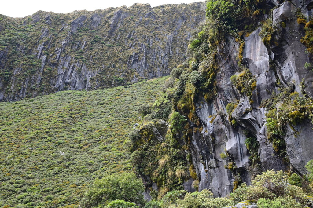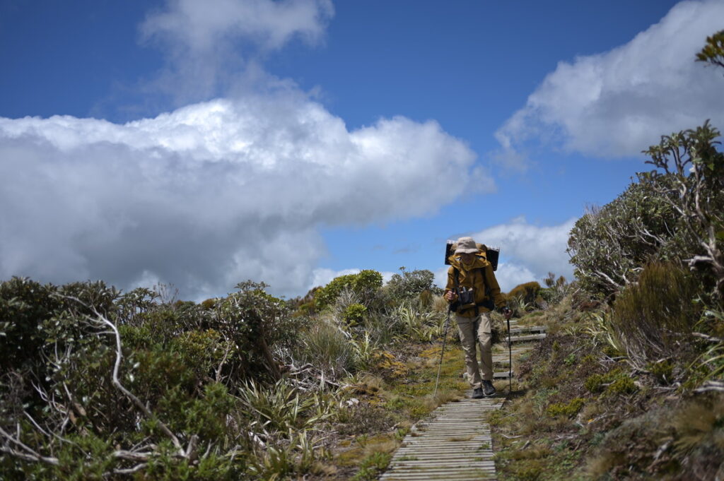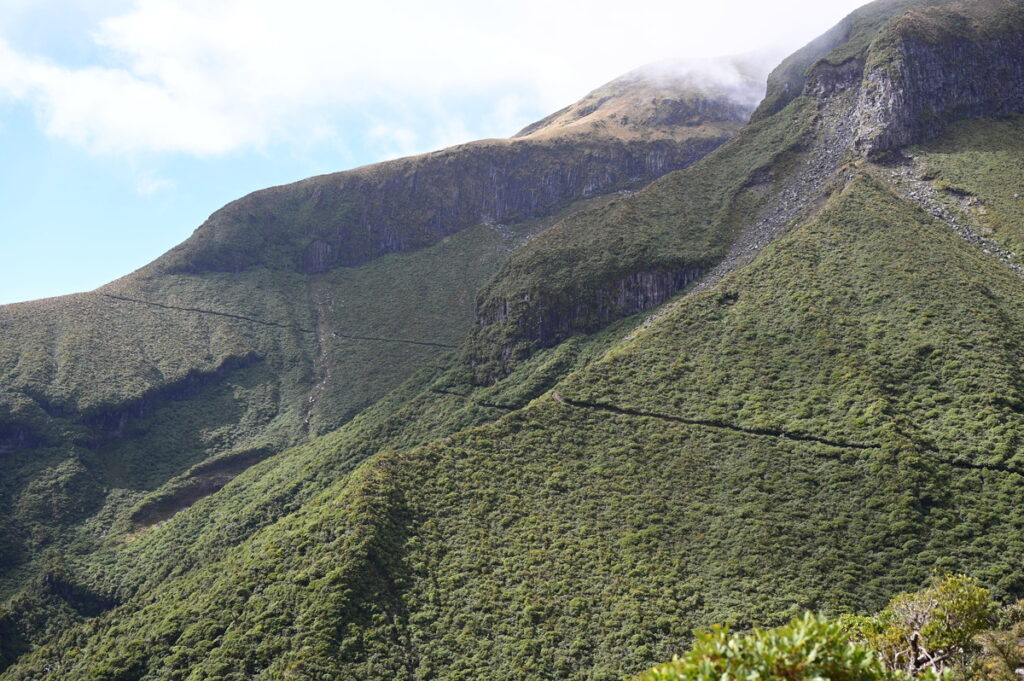 水平歩道のような、分かりやすく尾根を跨ぐようなトラバースを何度も進む。なるほどタラナキの溝感は、彫りの深い尾根にあったか。