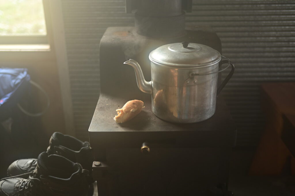 食事はもちろん出ないですが、ガスで調理し、マットを敷いて寝ます。