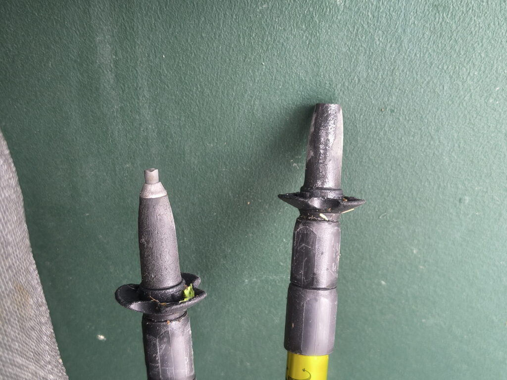 ギリまで伸ばせば125cmなので、テントとの相性的にも良く買ったんですが、石突きが両方簡単に取れました。