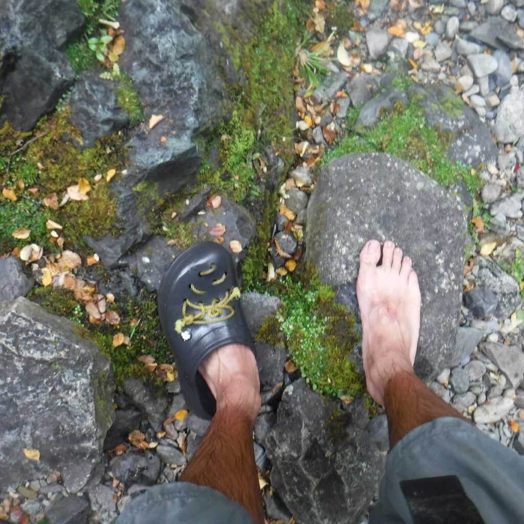 渡渉は靴でジャバジャバでええよ、って人は良いですが、僕はなるべく濡らしたくない派でした。