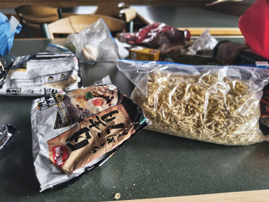 2週間分はさすがに持てないので、自分宛に郵便物として、袋ラーメンとか乾燥マッシュポテトとか、日持ちするものを送っておくのです。