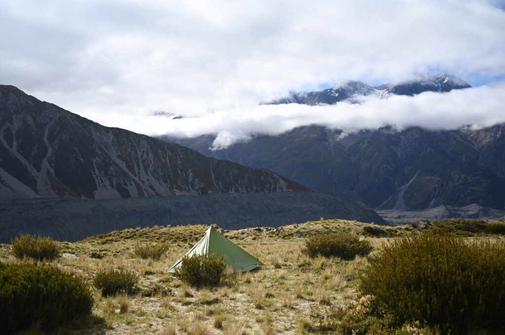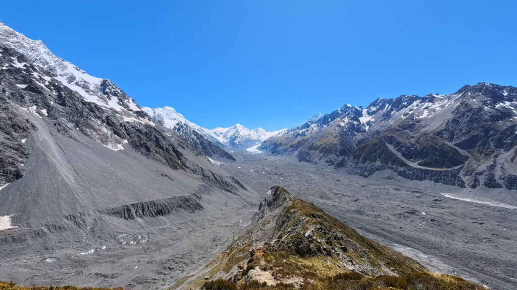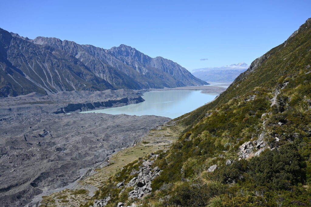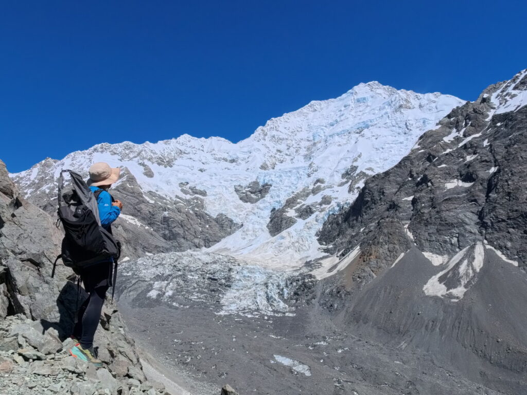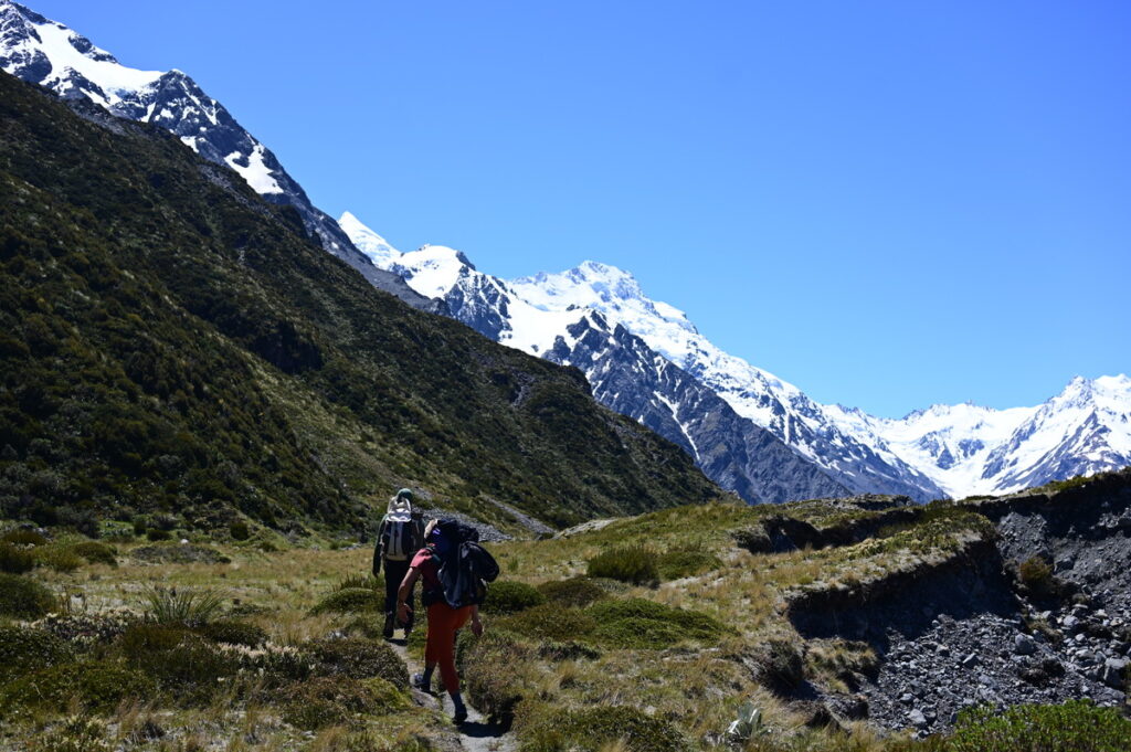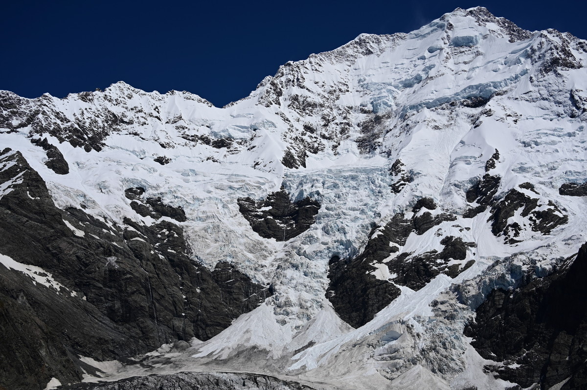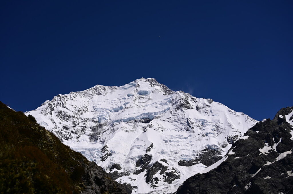 標高を1300mほどまで上げた時点で、マウントクックの南東壁が見えた。