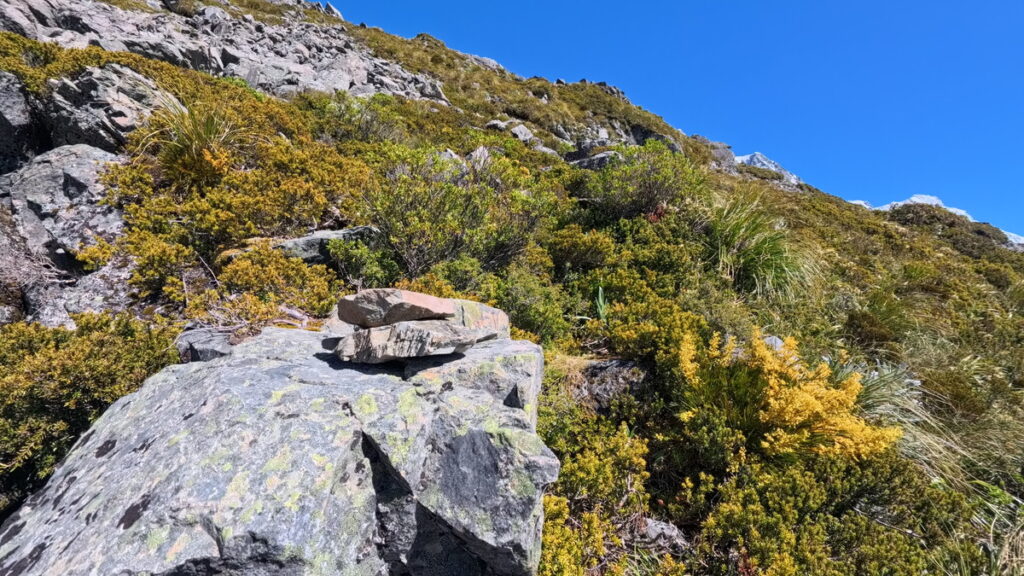 分かりにくい場所に置いてある石積みのケルンがとてもありがたい。