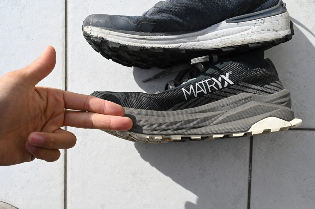 ソール・MATRYX・インソール含めて、濡れ系トレイルだと1000kmが目安かな?