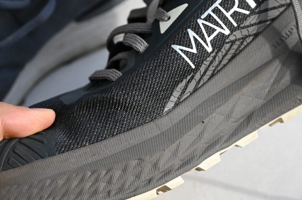 素材はMATRYXという、ロングトレイルシューズで最近採用され始めた、丈夫で破れにくい生地を採用。