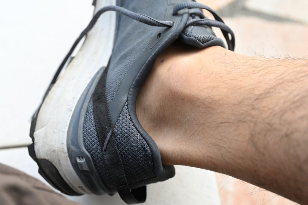 ソール幅が広いので、足を出すときにふくらはぎに内側が当たるんですよ。