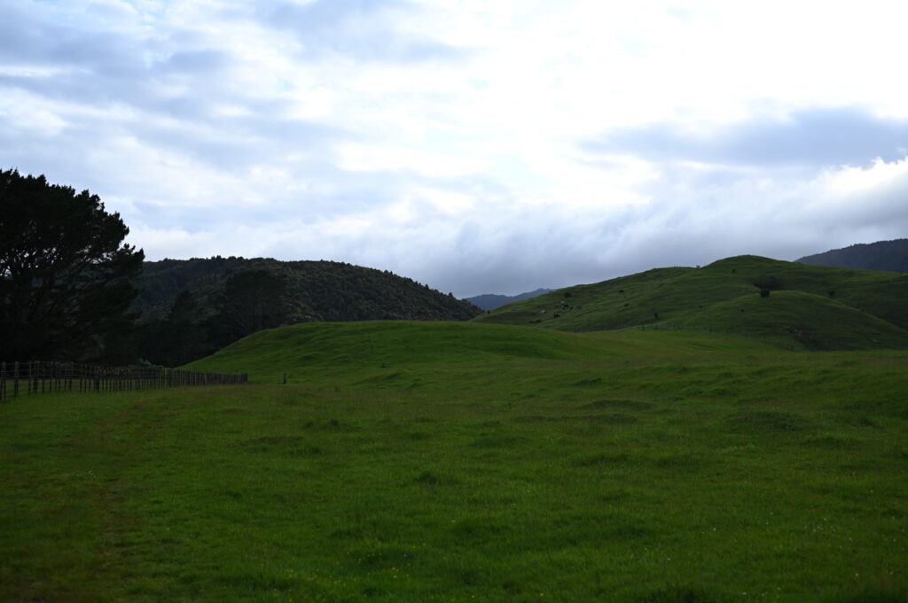 牧場の間を進む。