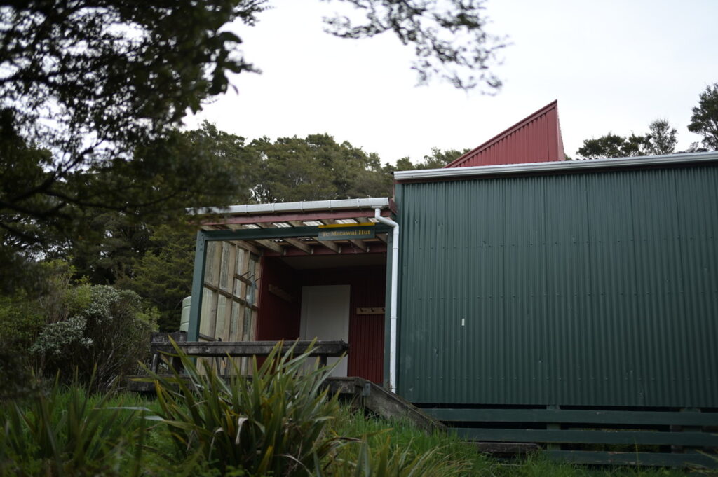 とにかく森の稜線を歩いて、本日の宿、Te Matawai Hutに到着。