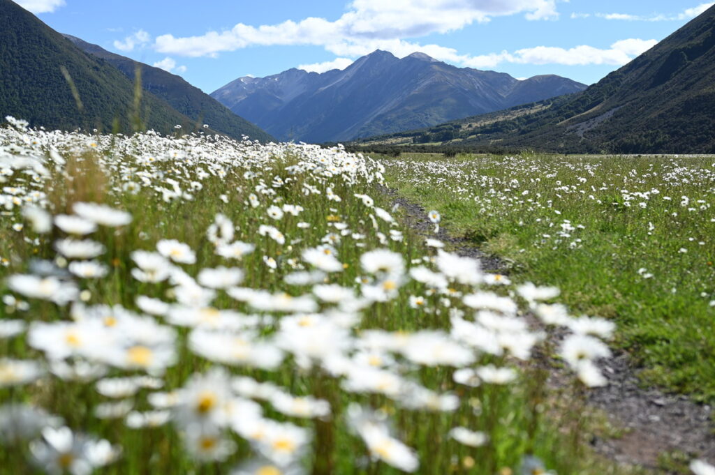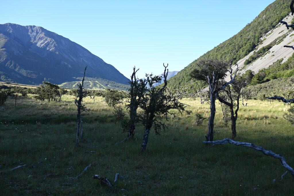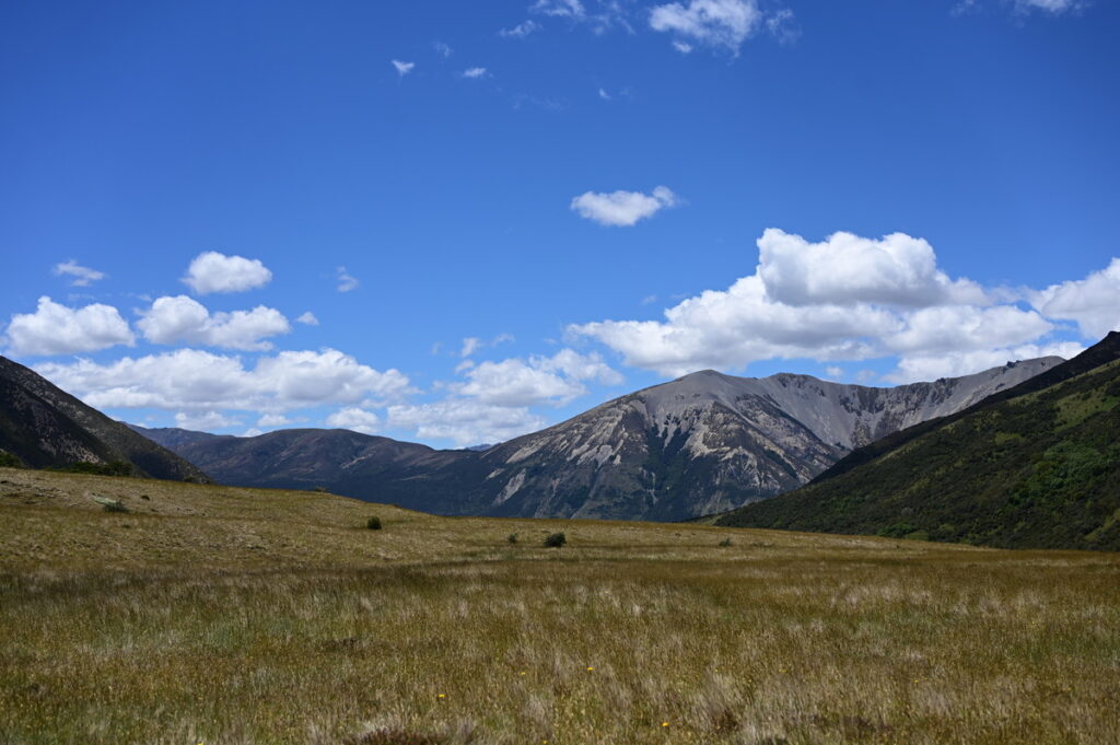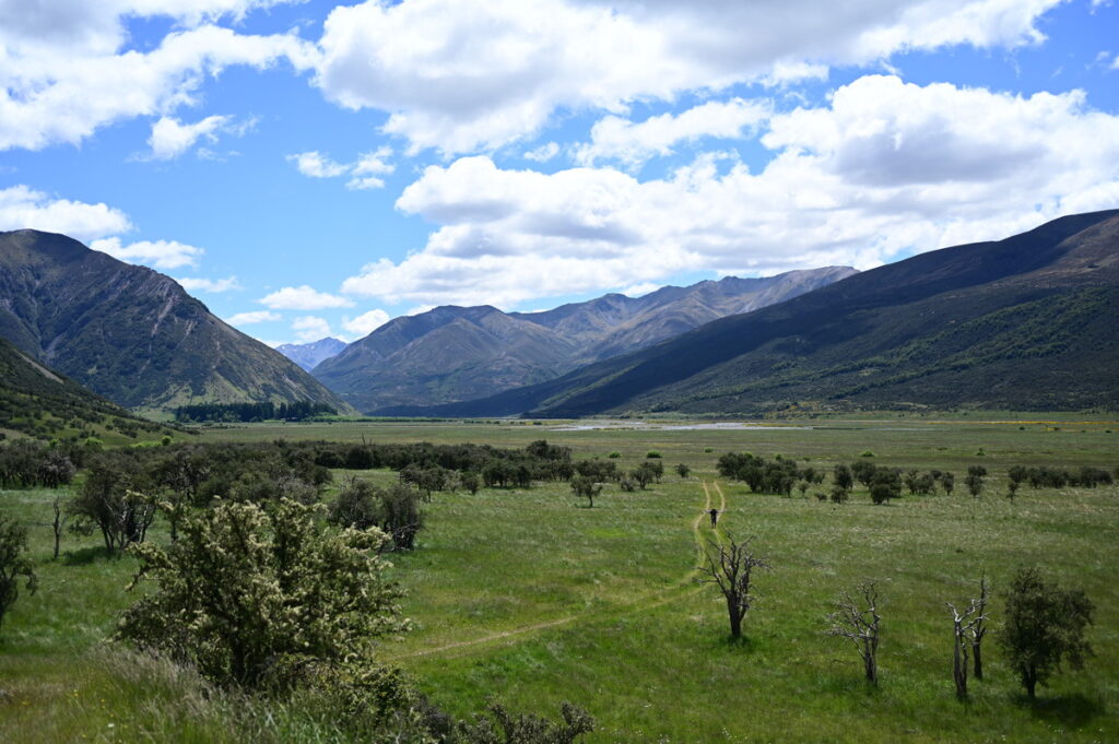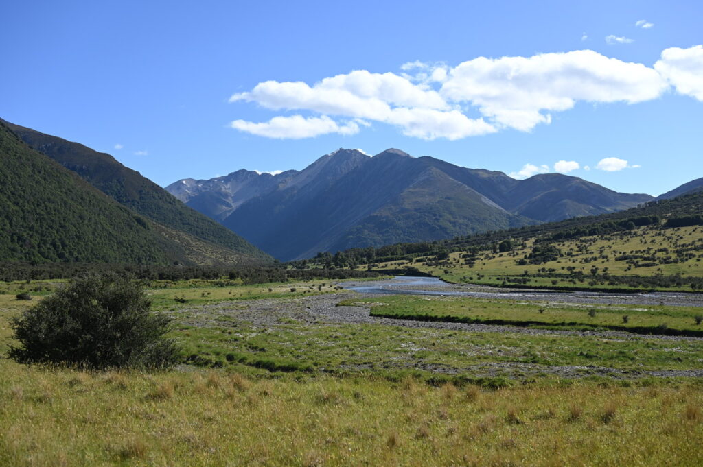 広々としたWaiau River流域は、2000m級の山々に挟まれて、どこを見ても目が楽しい。