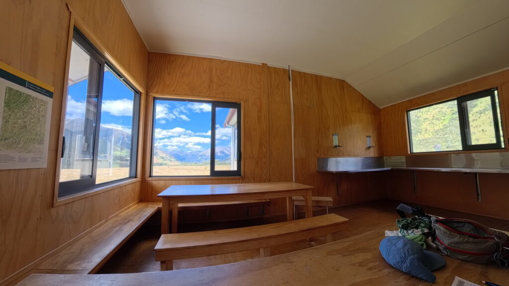 窓からWaiau River方面の山がハッキリと見える、絶景の小屋。