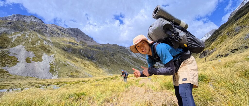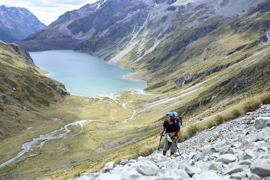 Waiau Passはしんどいかと心配したけれど、湖から+600mも無かったので、1時間くらいでパス。
