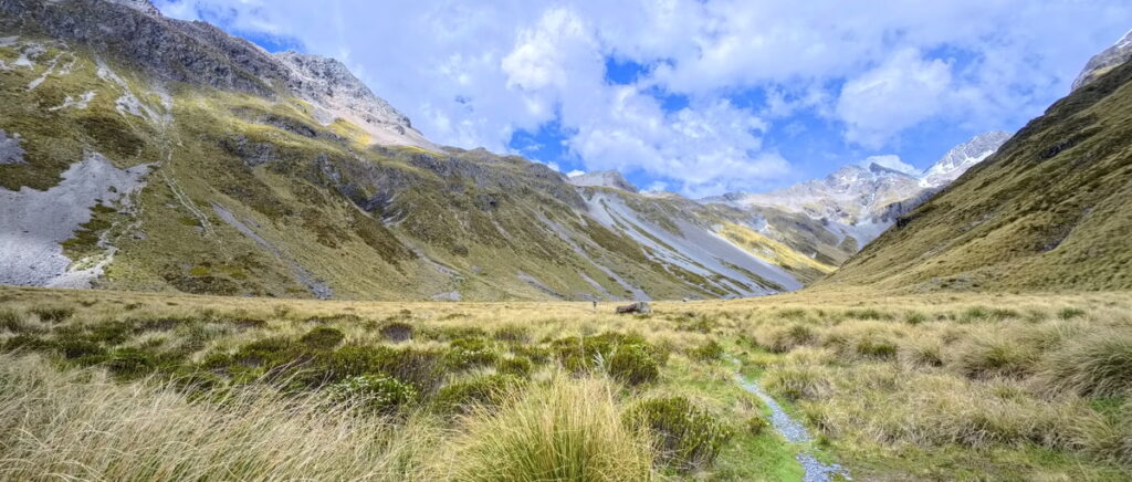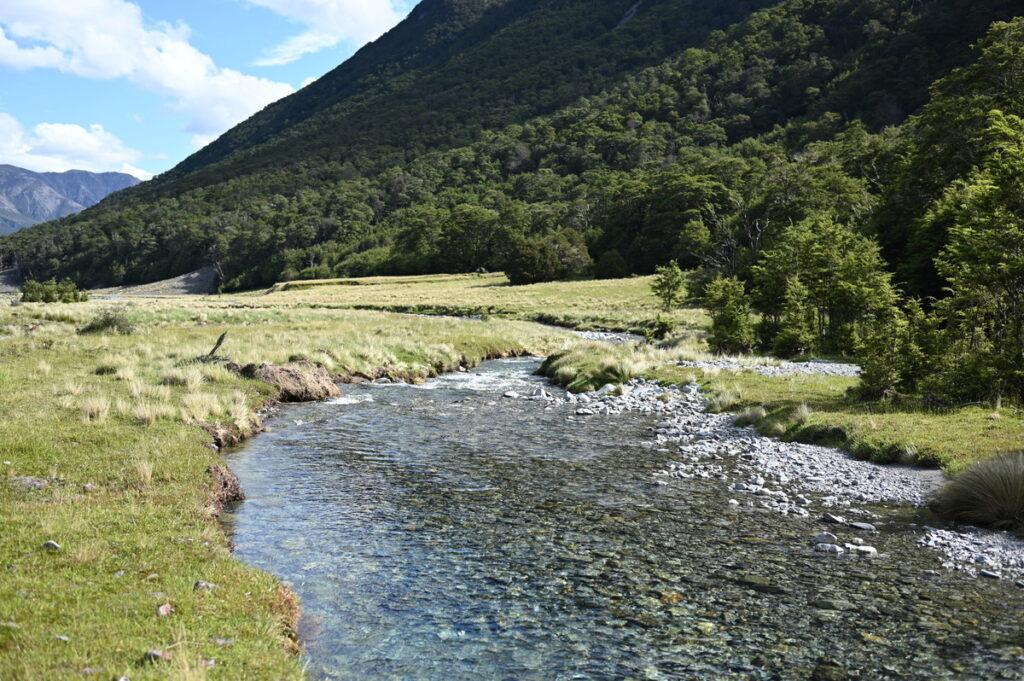 後半はご褒美ゾーン、Waiau Hut手前4km地点辺りから、とにかく広々とした場所に出る。