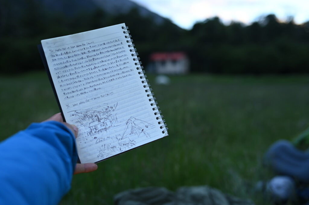 ご飯と明日の準備をした後は、外にマットを敷いて、絵を描いてみた。