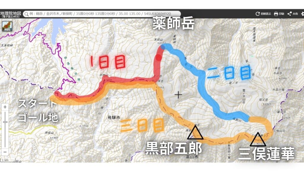 三日間のルート取りと行程