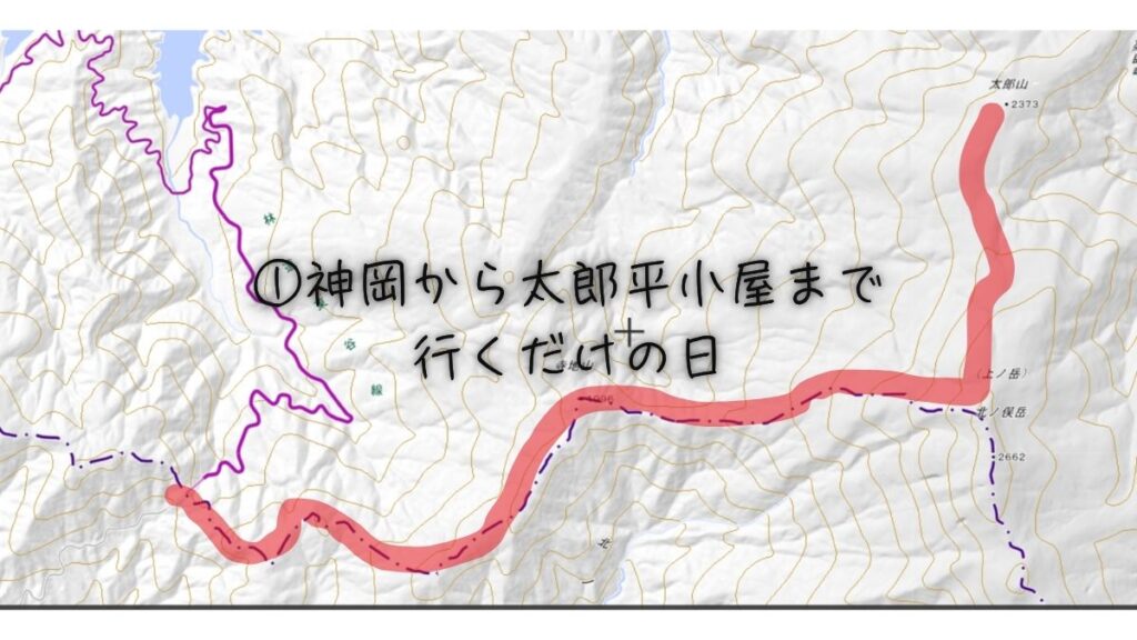 一日目は、神岡の登山口から太郎平小屋まで行くだけ。
