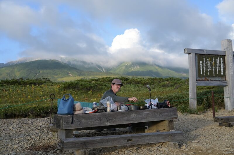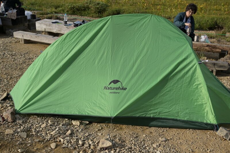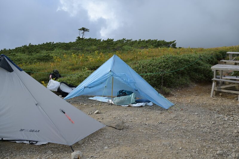 本当は太郎平小屋のテント場は別なんだけど、クマが出た年なので、小屋前で張らせてもらえた。