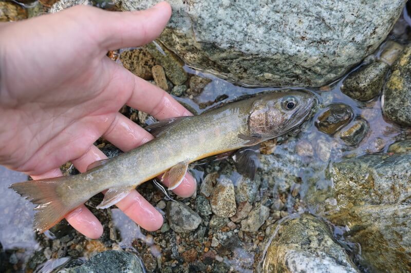 「釣ったイワナはリリースを」
