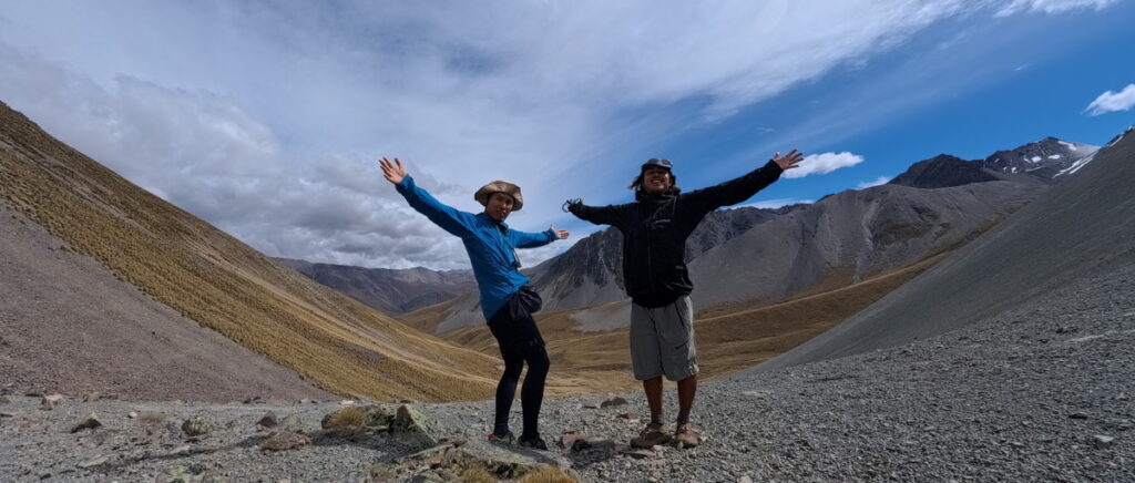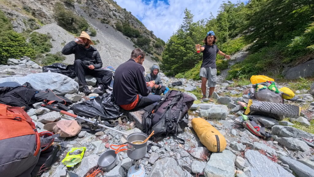 渡渉の難所はジャーマニー達と4人でスクラムを組んで渡る。