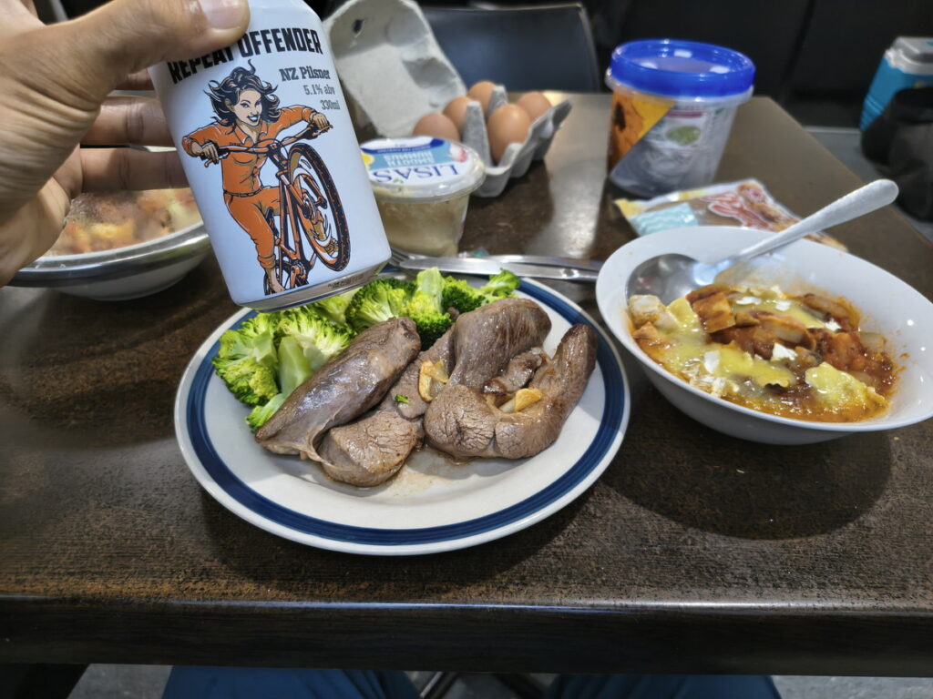 今日も贅沢食いのため、ラムステーキとビールとワイン。