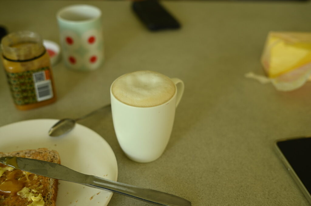 うっすいパンに、バターとはちみつをこれでもかと盛る。
