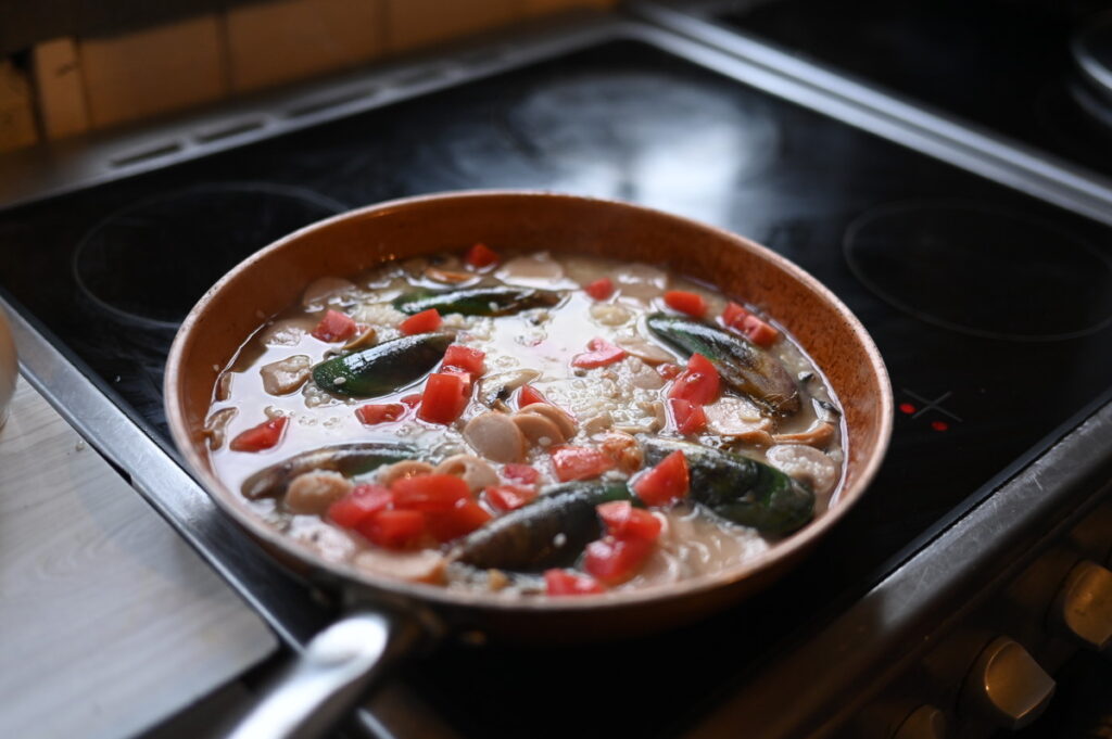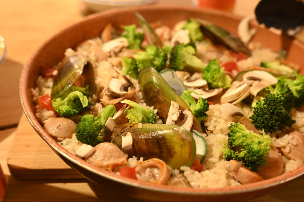 せっかくのバックパッカーズなので、パエリアとサラダを作って晩酌。