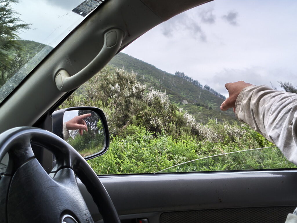 天気は良いけど雨予報、テントが面倒くさかったので、歩きつつもヒッチハイクを試みる。