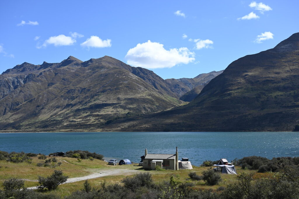 見えたHutは、どうやらオフローダーお気に入りの場所でもあるようで、キャンプ地は占拠状態。